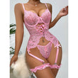 Elegant Floral Design Sexy Babydoll G-String Lace Corset Lingerie Set ( Free Size )